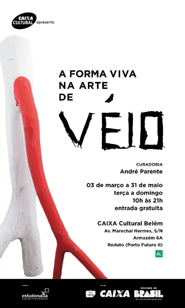 Na exposição “A Forma Viva na Arte de Véio”, o artista sergipano revela seu processo entre o que chama de tronco fechado e tronco aberto, um diálogo direto com a natureza, onde a forma já existe e cabe ao artista reconhecer, revelar e acompanhar. No primeiro, a intervenção do artista é mínima: ele acompanha a natureza do tronco, preservando sua verticalidade e deixando emergir as chamadas “formas vivas”, que apenas existem. No segundo, ele penetra a madeira, escava, entalha e constrói figuras e cenas reconhecíveis, que remontam memórias do sertão brasileiro, do trabalho e do cotidiano.